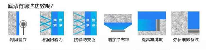 我們都知道建筑外墻基材多為水泥砂漿或混凝土表面,其特點是多空隙、堿性強。其中多孔結(jié)構(gòu)使其吸水性強,致使真石漆涂層表面不夠光滑,容易引起涂膜起皺,并可能導(dǎo)致涂膜干燥過快而引起面漆開裂浪費面漆。堿性強可以導(dǎo)致涂料中樹脂的化學(xué)降解,加速涂膜老化,減少涂層的使用期限,甚至泛白、返堿。